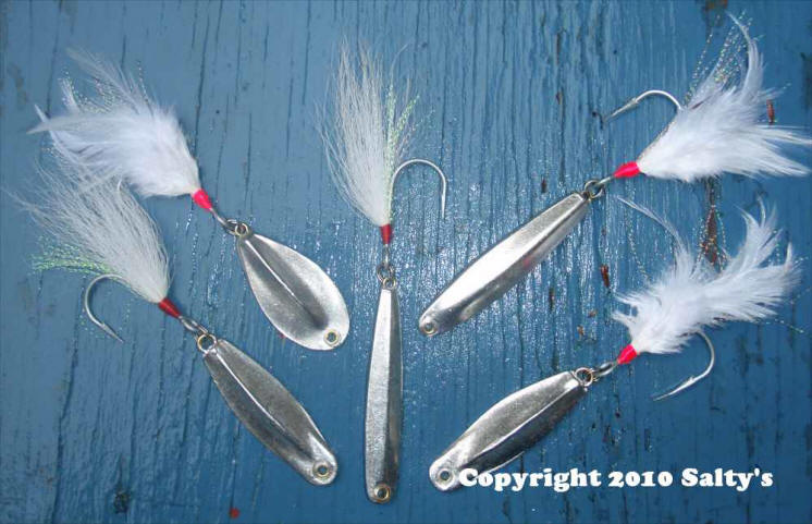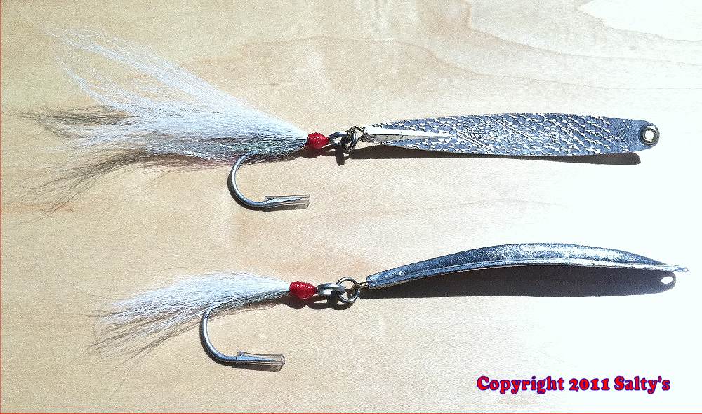 We use our own machine tied bucktail dressed VMC hooks because they're the best!